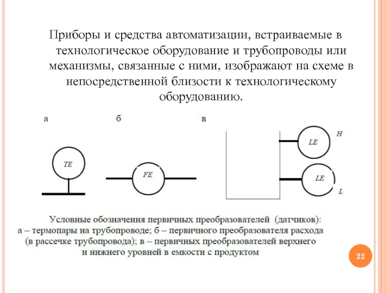 Слайд 22Приборы и средства автоматизации, встраиваемые в технологическое оборудование и трубопроводы