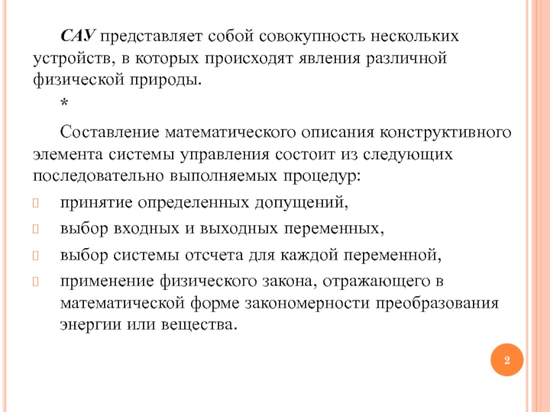 Слайд 2САУ представляет собой совокупность нескольких устройств, в которых происходят явления