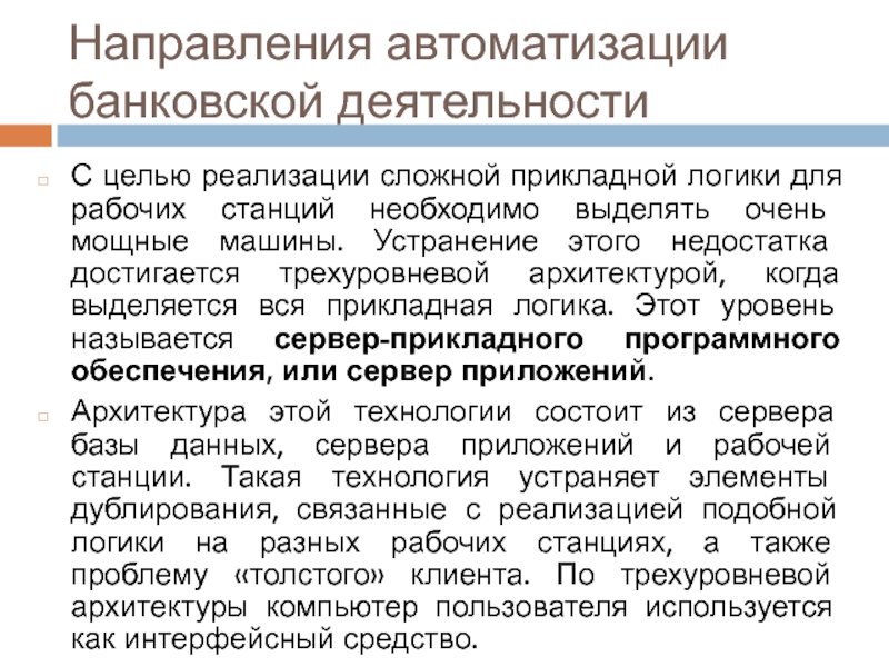 банках является переход от «файл-серверных» систем к системам типа «клиент