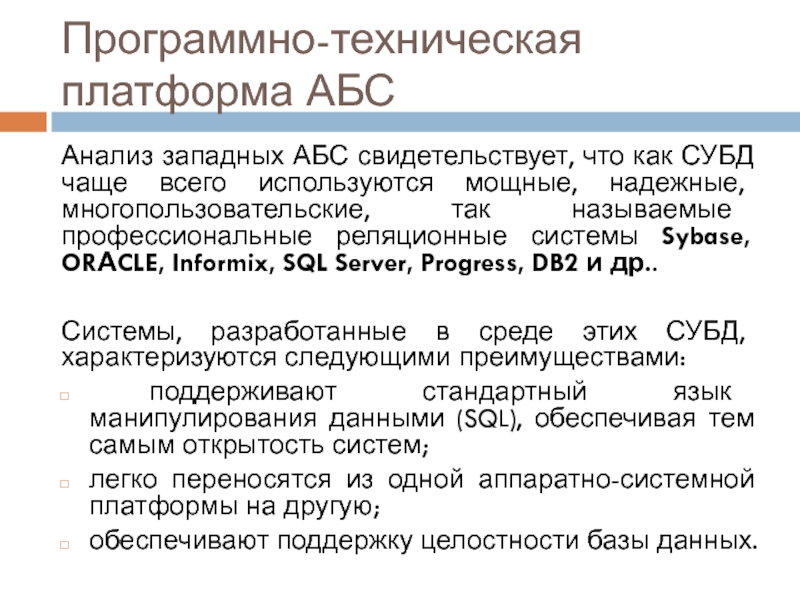 Анализ западных АБС свидетельствует, что как СУБД чаще