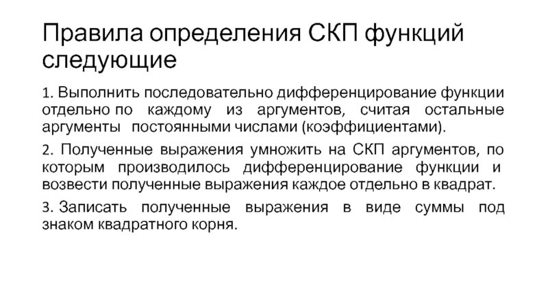 2. Полученные выражения умножить на СКП аргументов, по которым производилось дифференцирование функции и возвести полученные выражения каждое отдельно в квадрат.