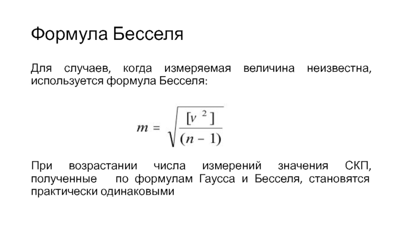 измерений значения СКП, полученные по формулам Гаусса и Бесселя, становятся практически одинаковыми