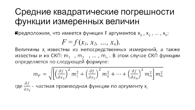 Слайд 28Средние квадратические погрешности функции измеренных величин