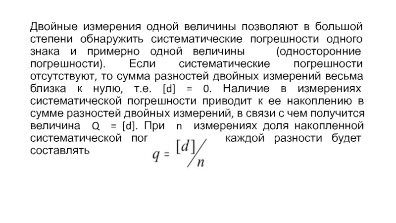 Слайд 33Двойные измерения одной величины позволяют в большой степени обнаружить систематические