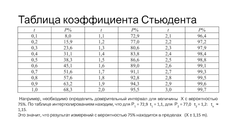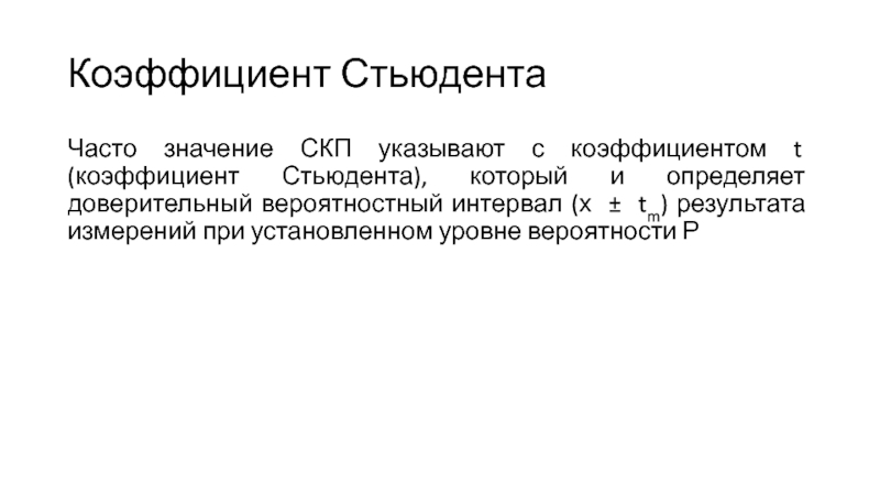 Часто значение СКП указывают с коэффициентом t (коэффициент Стьюдента),