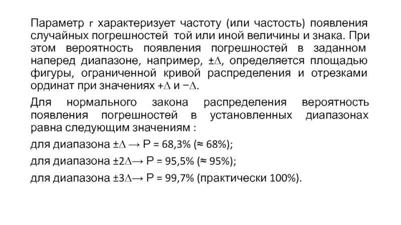 Слайд 21Параметр r характеризует частоту (или частость) появления случайных погрешностей той