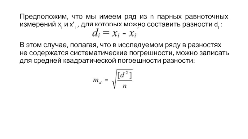 Слайд 31Предположим, что мы имеем ряд из n парных равноточных измерений