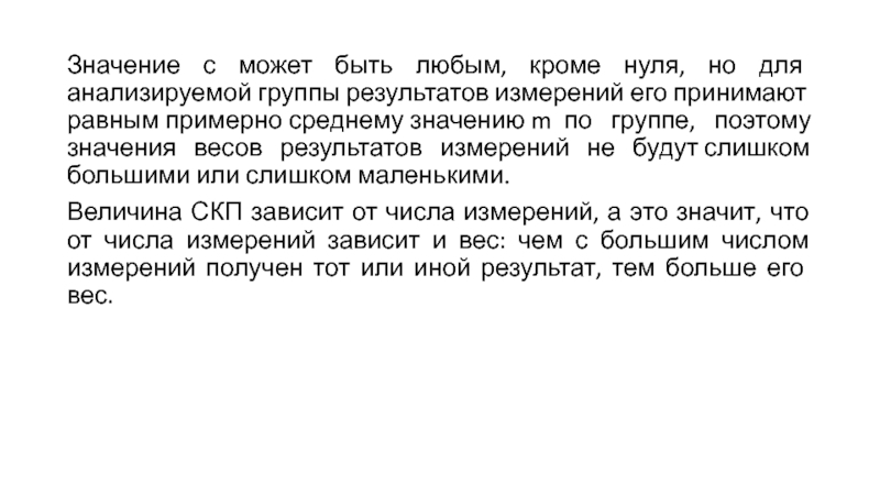 Величина СКП зависит от числа измерений, а это значит, что от числа измерений зависит и вес: чем с большим числом измерений получен тот или иной результат, тем больше его вес.