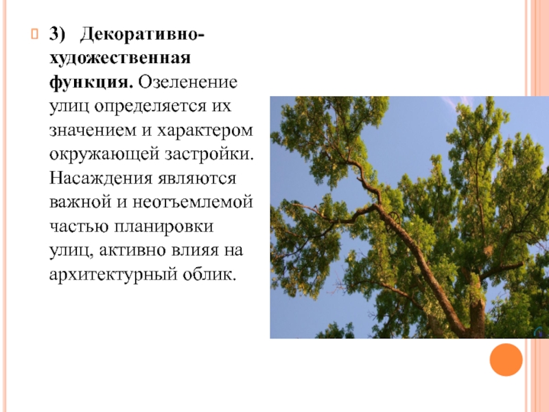 Слайд 253) Декоративно-художественная функция. Озеленение улиц определяется их значением и характером окружающей