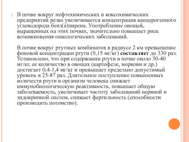 канцерогенного углеводорода бенз(а)пирена. Употребление овощей, выращенных на этих почвах, значительно