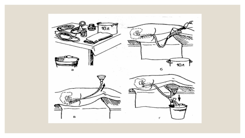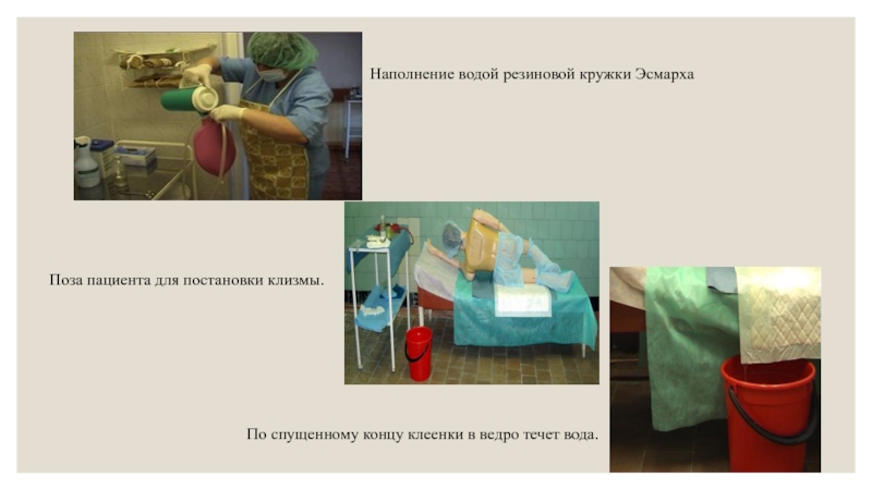 Слайд 15Наполнение водой резиновой кружки Эсмарха