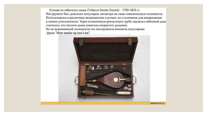 организм (анальным или вагинальным путем, в зависимости от диагноза), придумав нехитрое устройство: подвешиваемую емкость, снабженную гибкой трубкой.