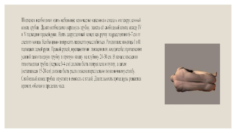 10. Закончив введение не разжимать грушевидный баллон или пережать трубку зажимом, извлечь из прямой кишки.