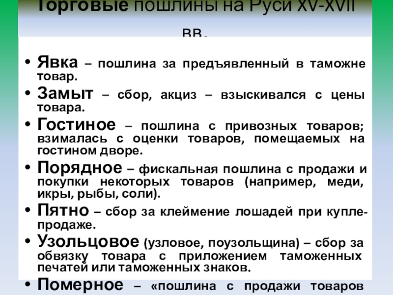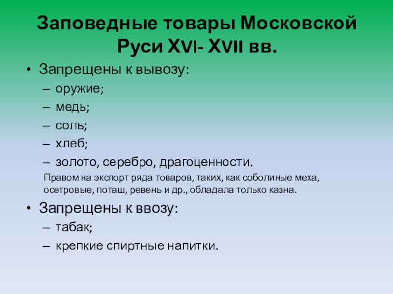 Формирование системы таможенных пошлин. Система заповедных товаров как первая отечественная протекционистская политика.