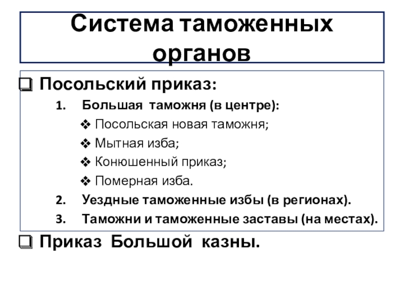 Формирование системы таможенных учреждений России.