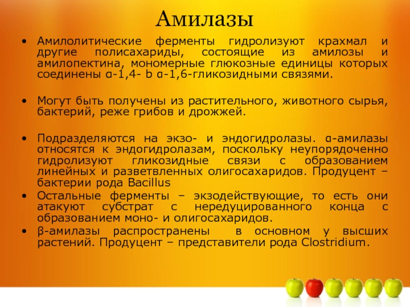 К амилолитическим ферментам в целом принадлежат 85 ферментов, которые гидролизуют