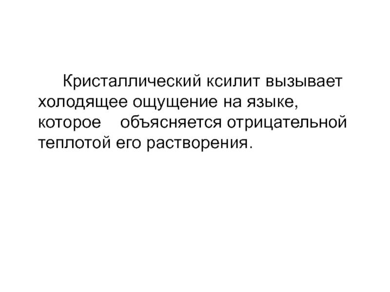 Слайд 32 Кристаллический ксилит вызывает холодящее ощущение на языке, которое объясняется