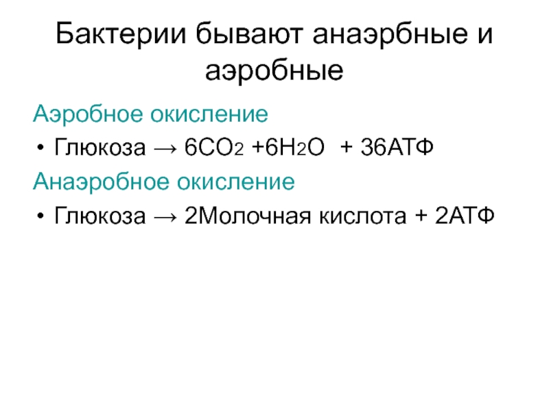Слайд 14Бактерии бывают анаэрбные и аэробные