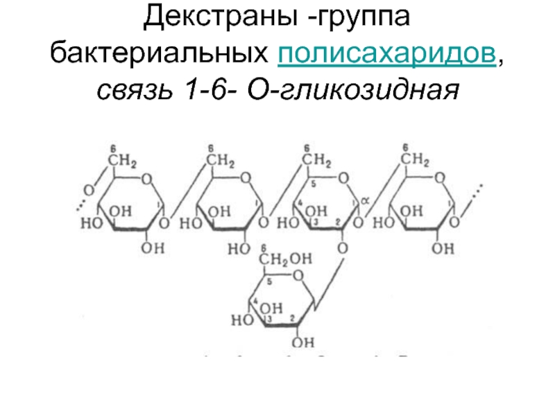 Слайд 12Декстраны -группа бактериальных полисахаридов,