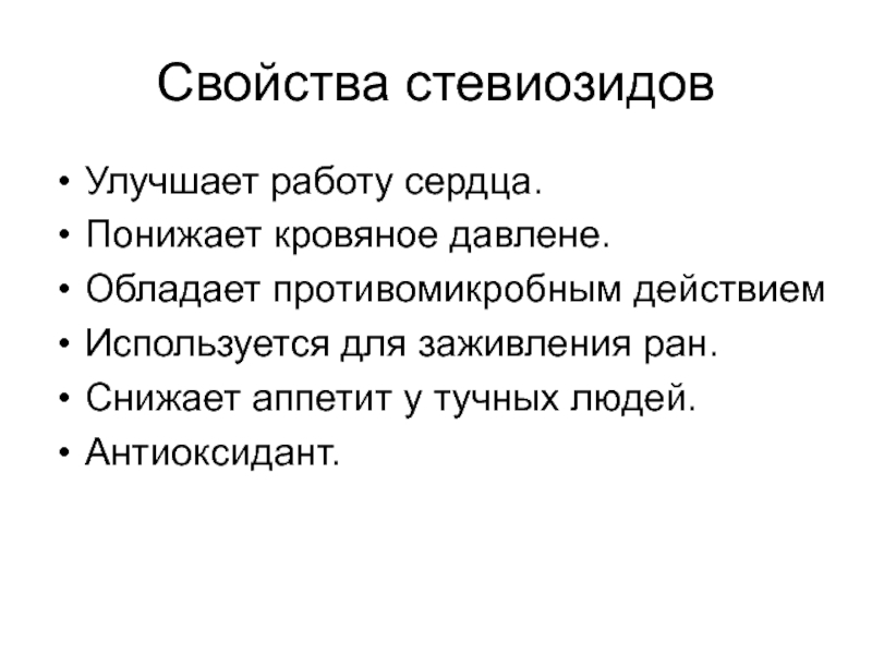 Слайд 42Свойства стевиозидов