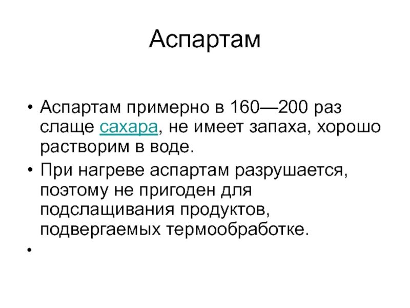 Аспартам примерно в 160—200 раз слаще