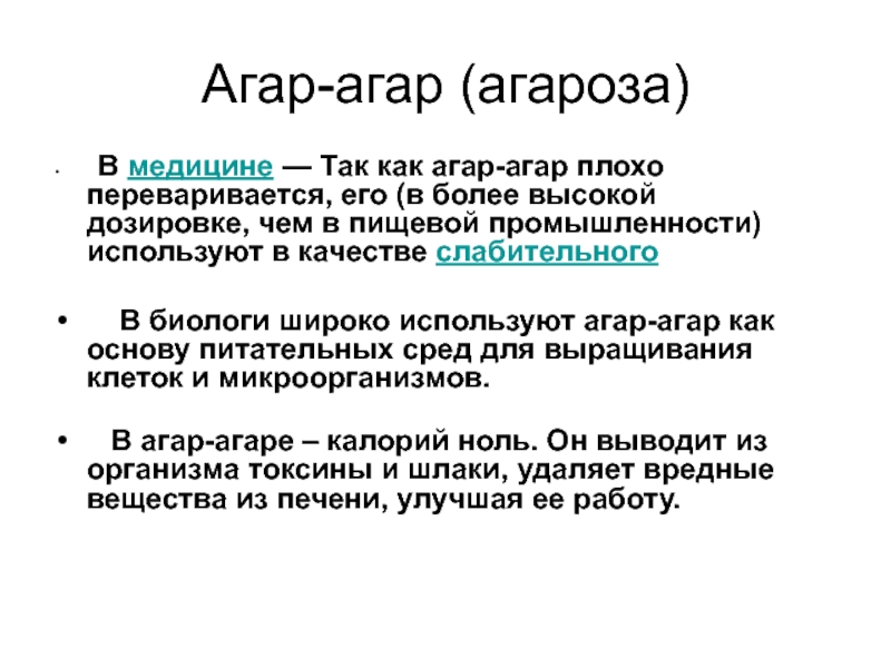 В медицине — Так как агар-агар плохо