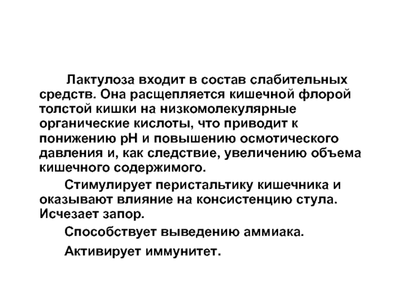 Слайд 46 Лактулоза входит в состав слабительных средств. Она