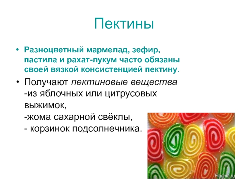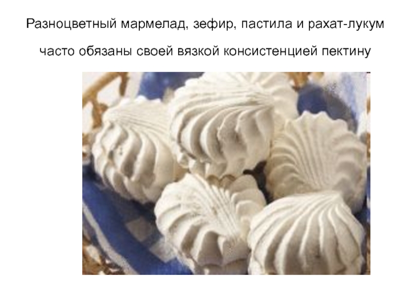 Слайд 51Разноцветный мармелад, зефир, пастила и рахат-лукум часто обязаны своей вязкой