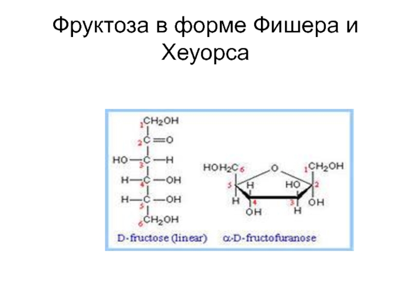 Слайд 16Фруктоза в форме Фишера и Хеуорса