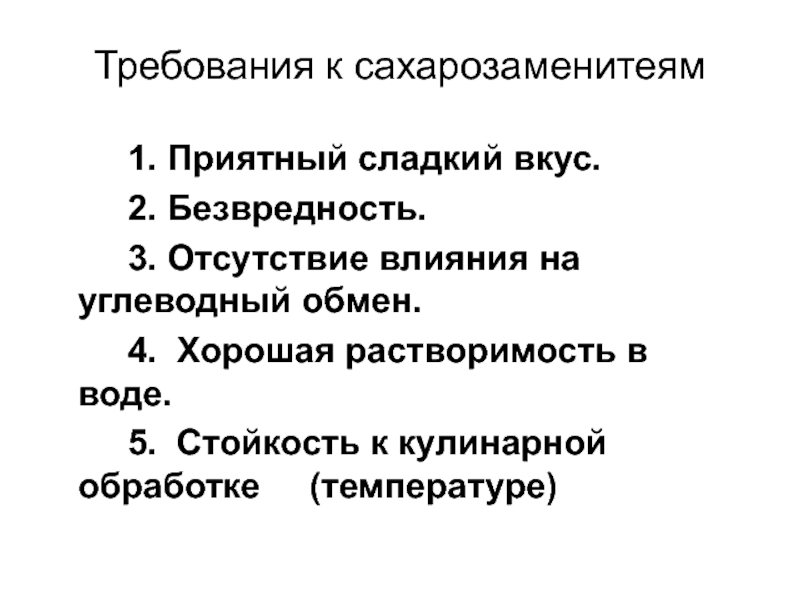 Слайд 26Требования к сахарозаменитеям