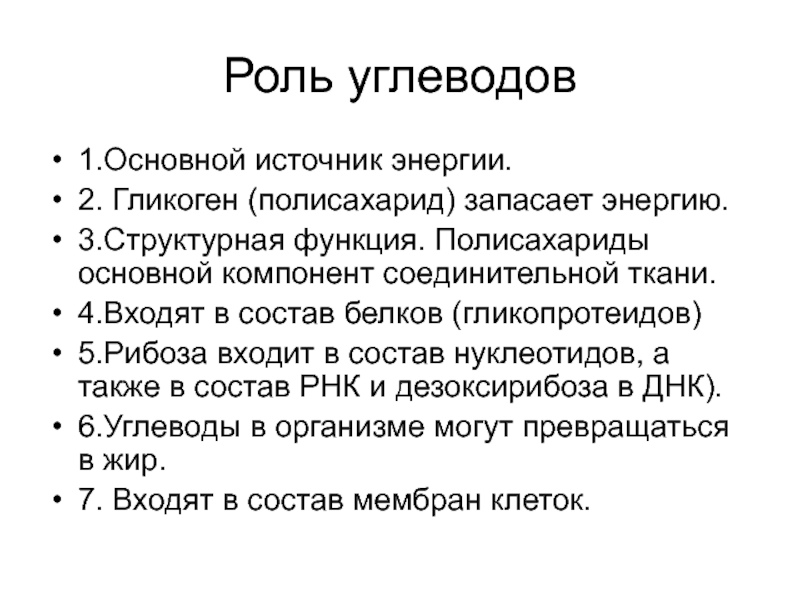 Слайд 6Роль углеводов