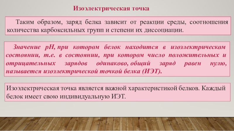 Изоэлектрическая точка является важной характеристикой белков. Каждый белок имеет свою индивидуальную ИЭТ.