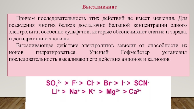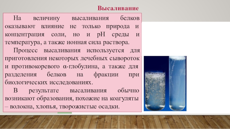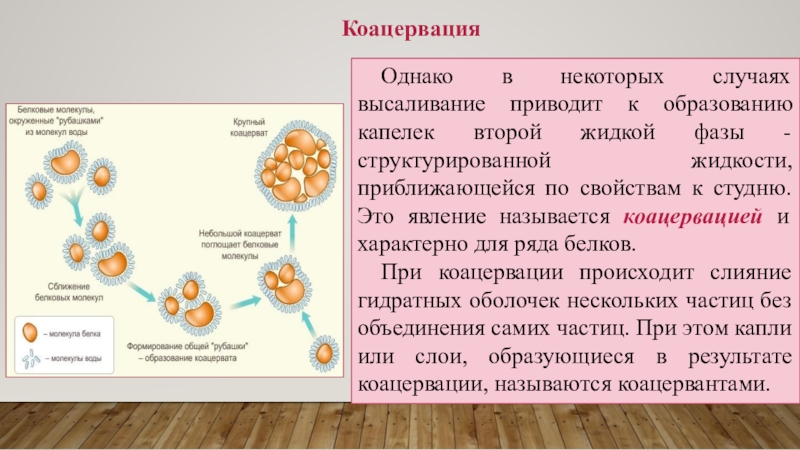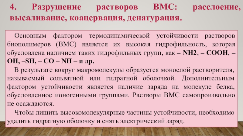 4. Разрушение растворов ВМС: высаливание, коацервация (расслоение), денатурация.