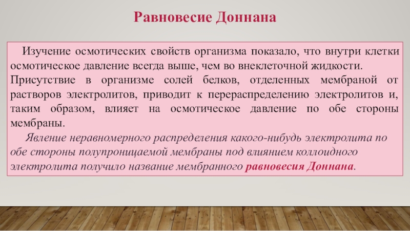 Слайд 42Изучение осмотических свойств организма показало, что внутри клетки осмотическое давление