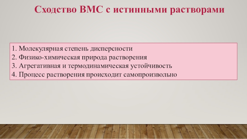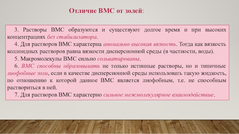 Слайд 9Растворы ВМС в отличие от коллоидных растворов характеризуются следующими особенностями: