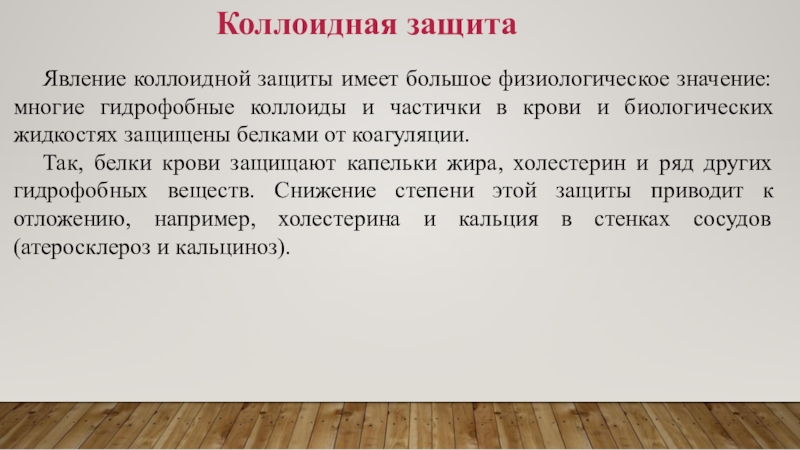 Слайд 33Явление коллоидной защиты имеет большое физиологическое значение: многие гидрофобные коллоиды
