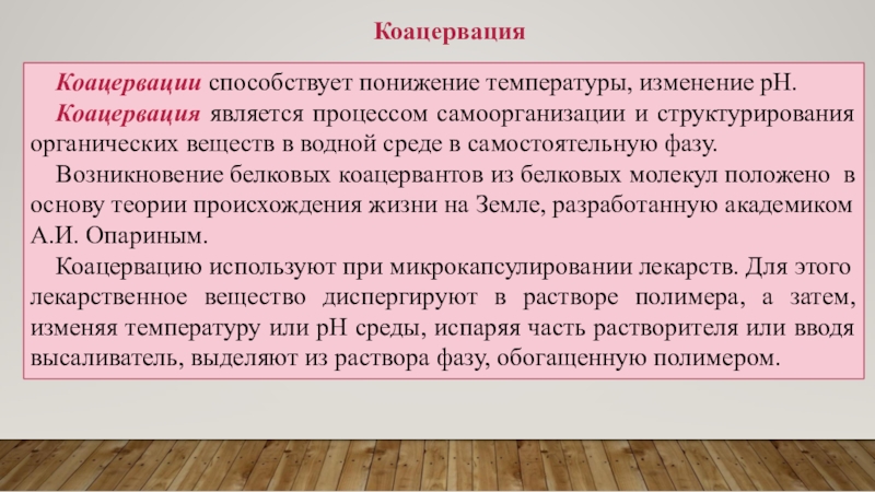 ВМС, концентрации, температуры, наличия электролитов, рН среды. Лучше всего застудневание происходит в ИЭТ.