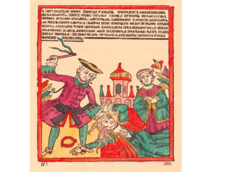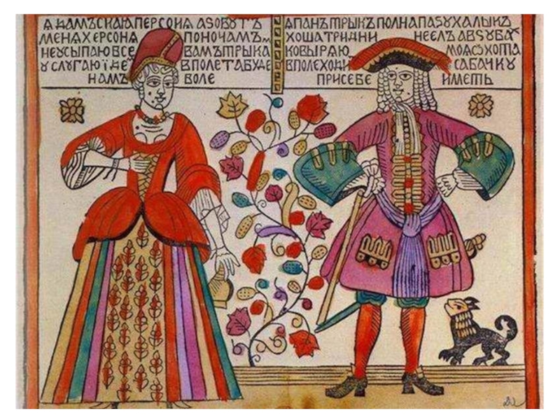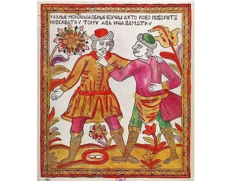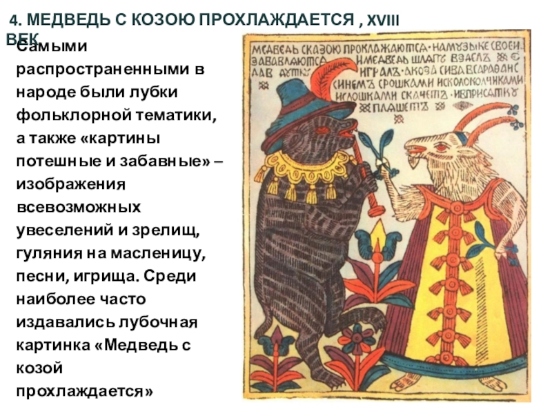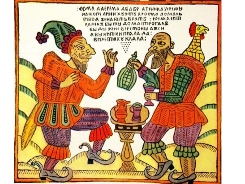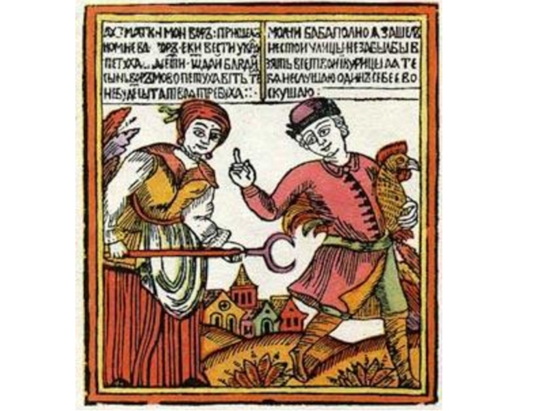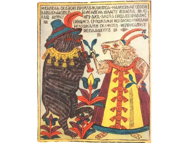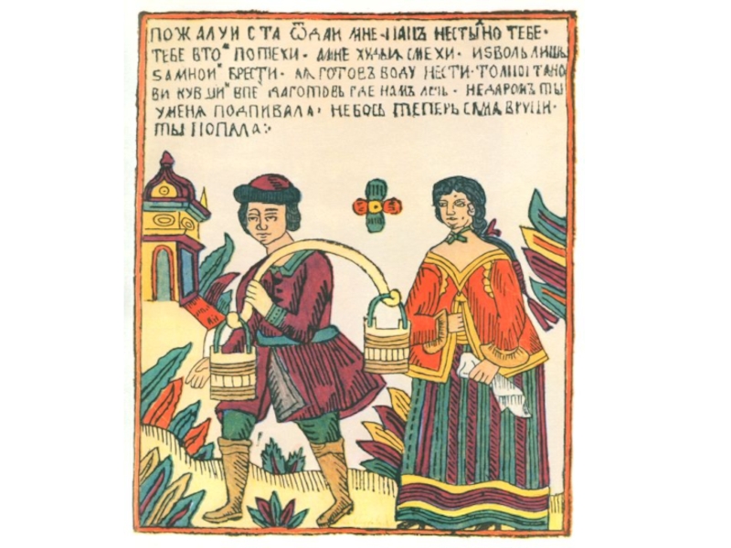 Слайд 38Самыми распространенными в народе были лубки фольклорной тематики, а также