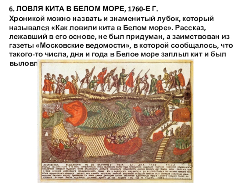 лубок, который назывался «Как ловили кита в Белом море». Рассказ,