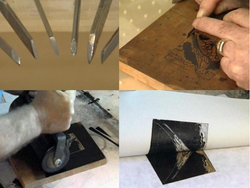 Далее резцом выбирал фон, оставляя выпуклыми только контуры рисунка, линии.