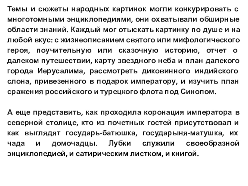 Слайд 29Темы и сюжеты народных картинок могли конкурировать с многотомными энциклопедиями,