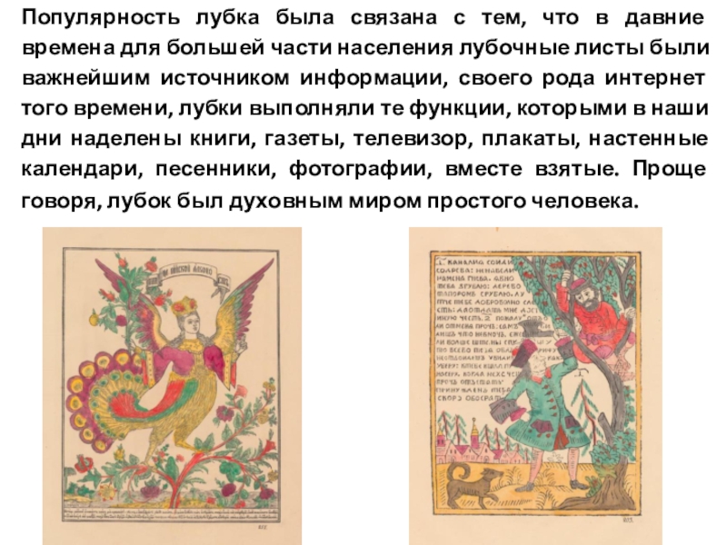 Слайд 28Популярность лубка была связана с тем, что в давние времена