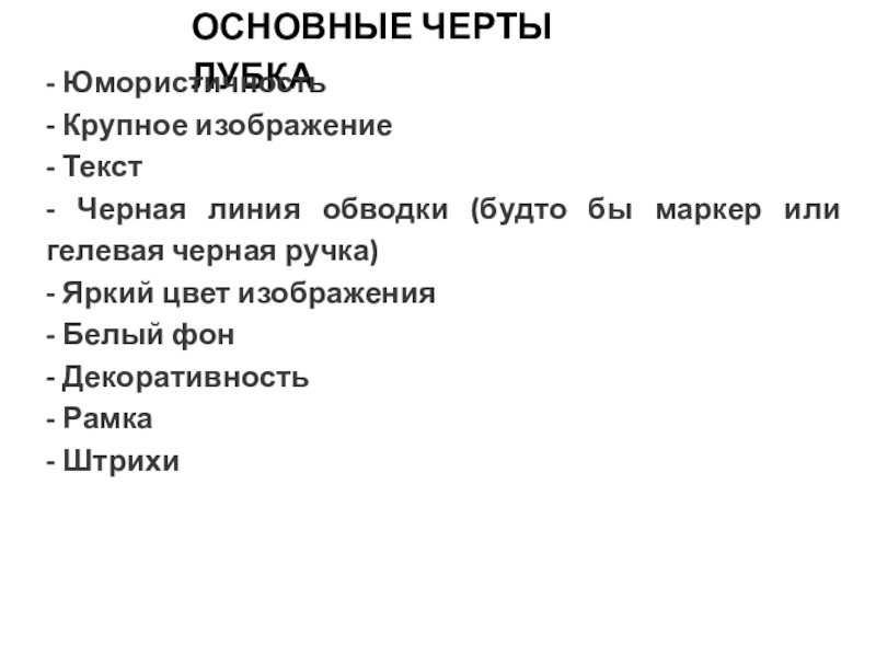 Слайд 33ОСНОВНЫЕ ЧЕРТЫ ЛУБКА