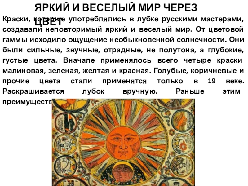 Слайд 32Краски, которые употреблялись в лубке русскими мастерами, создавали неповторимый яркий