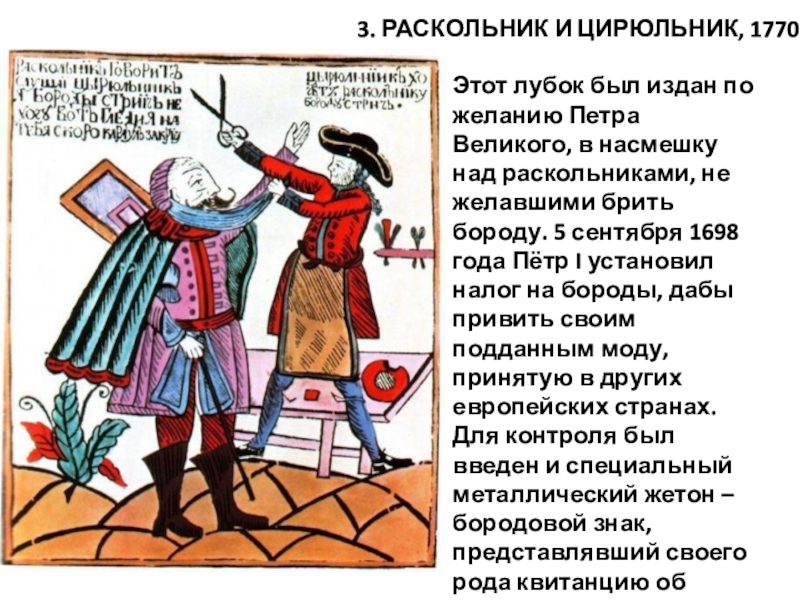 3. Раскольник и цирюльник, 1770-е