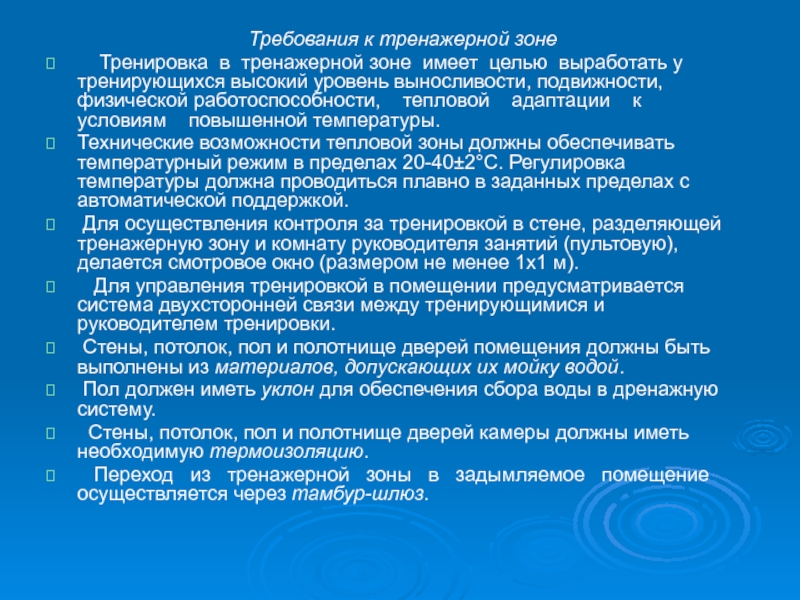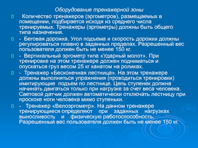 тренажерную зону;