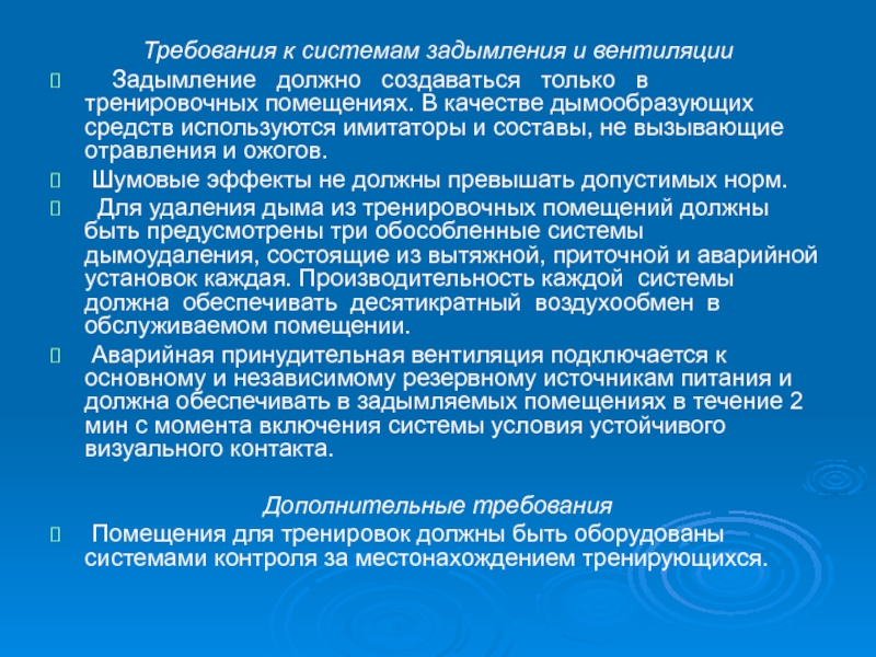 Требования к задымляемым помещениям