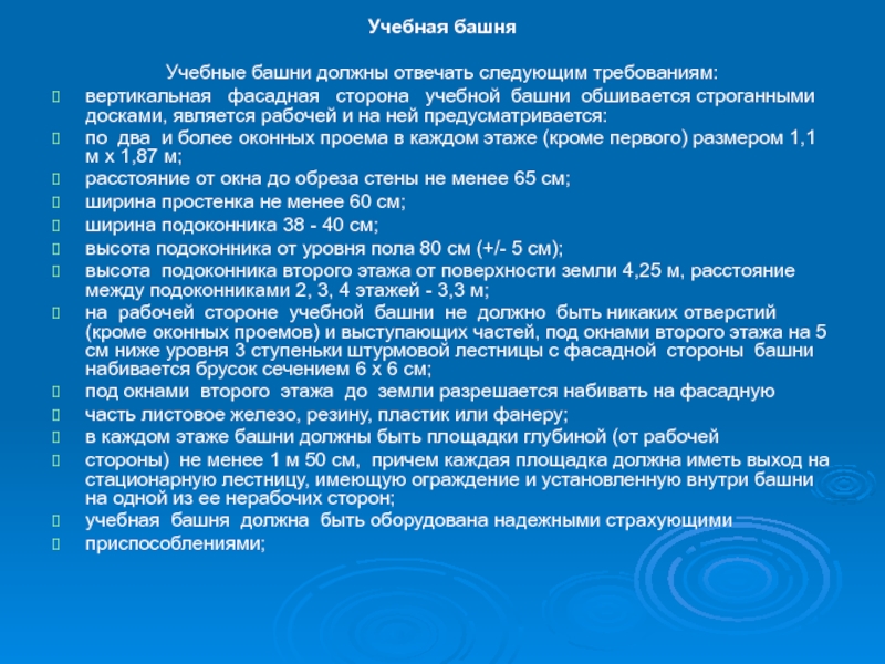 Учебные башни должны отвечать следующим требованиям: