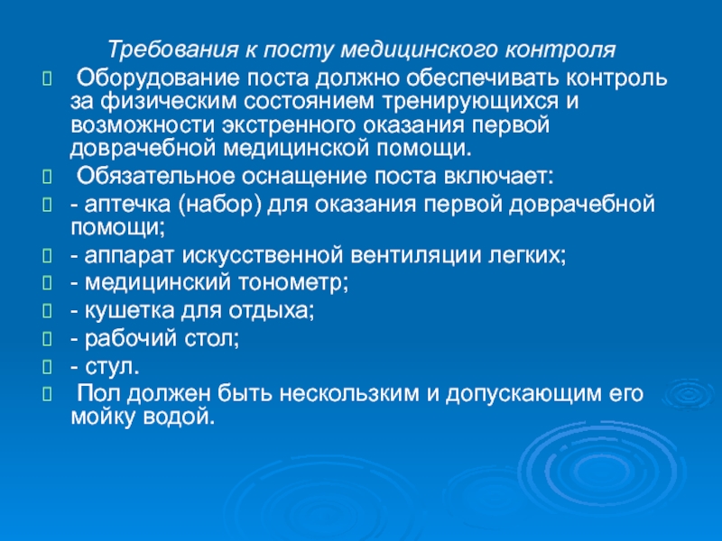 пост медицинского контроля;