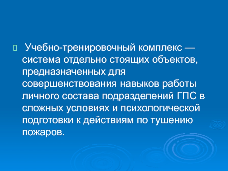 Слайд 3 Учебно-тренировочный комплекс — система отдельно стоящих объектов, предназначенных для
